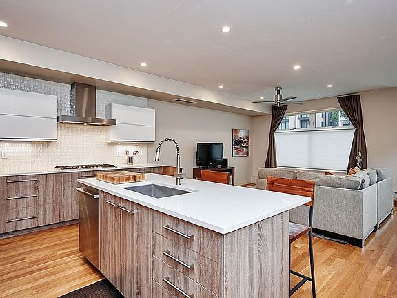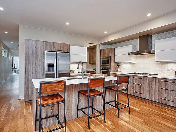 Duplex with open floor plan. Master suite with walk in closet and 2nd bedroom, with private bathroom. Additional bonus room or guest bedroom with private bathroom. Roof top deck with stunning skyline view. All hardwood floors, custom cabinets, quartz countertops, and kitchen with Bosch appliances.