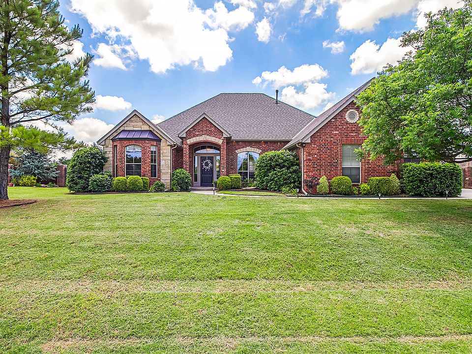 Beautiful home on a half acre lot with a storage shed and a storm shelter in the garage floor. The community pool is located directly across the street. The living has a gas log fireplace and is open to the kitchen and dining. The office has a built in desk and bookcases. The kitchen has a breakfast bar, a walk in pantry, a built in wine rack, and granite counters. The master has a walk in closet with a built in dresser and shelves, a jetted tub, a step in shower, and double vanities. The 2nd bedroom has a walk in closet with built in shelves and a full bath with a step in shower. The 3rd and 4th bedrooms share a Jack-n-Jill bath with double vanities. The laundry room has a sink, counter, and cabinets. There is large covered patio and a covered porch. Current owners have lived in the house less than 1 year with multiple renovations and only 1 owner prior. Norman schools, easy access to I-35 Buyer agents welcome