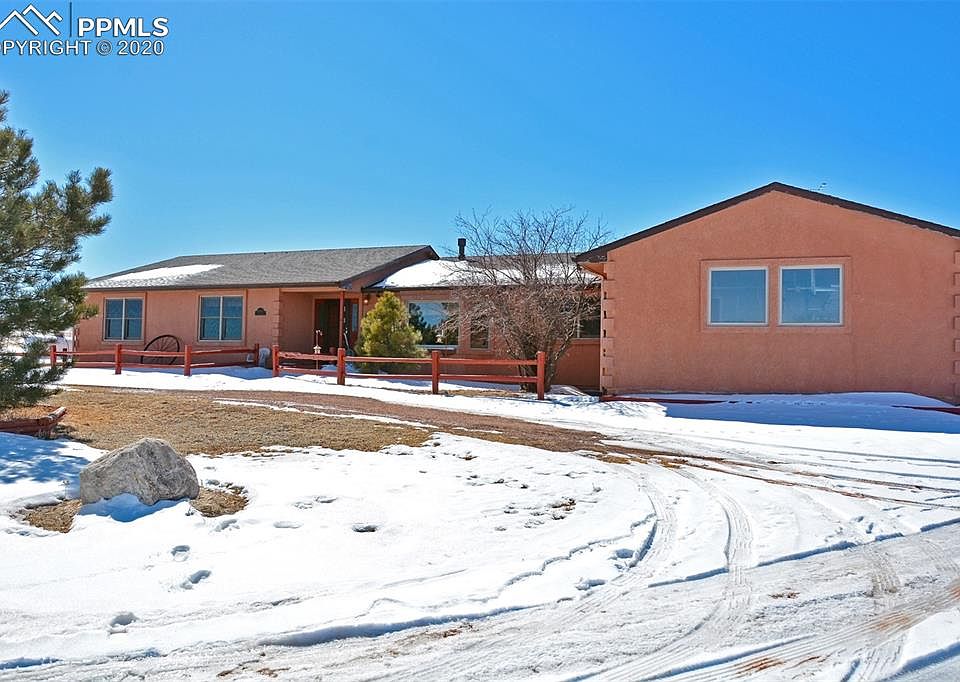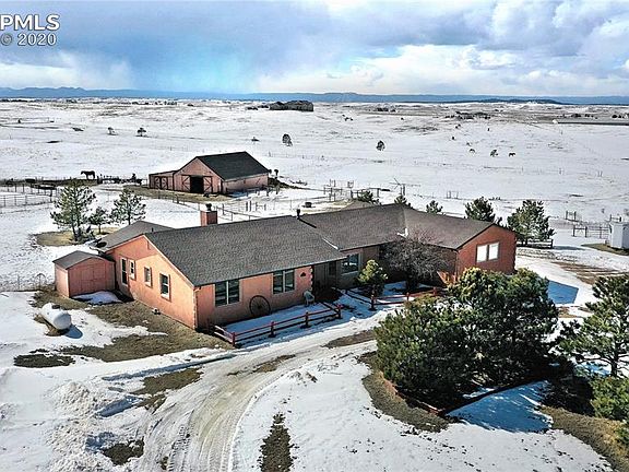 Welcome to your new home in Black Forest! Located within the boundaries of the desirable D38 school district, this house provides privacy and solitude while only about 5 miles from the Black Forest Regional Park, 10 miles from St. Francis Hospital and 12 miles from the interstate. This custom 2x6 built, stuccoed ranch home is nestled on almost 12 acres of horse property which is cross-fenced for turnouts with smooth wires. Inside the home, you'll find a spacious floor plan which features 2 master bedrooms on the main level, an additional bathroom and 2 additional bedrooms, a wood burning fireplace, as well as a large eat-in kitchen with red oak cabinets and a large bay window. The 1,148 sq.ft unfinished basement provides plenty of room to expand, or as currently used with crawlspaces, provides vast storage. This single owner home was designed to maximize the views in all directions of the house. With plentiful windows and natural light throughout the house, you have views of the bluffs and pine trees in the front of the house and the back of the house faces west, capitalizing on a spectacular view of Pikes Peak. Spend endless evenings on the large 800sf redwood deck with a built-in sunshade and hot tub, entertaining and enjoying our beautiful Colorado sunsets. In addition to the two storage sheds located in the fenced-in back yard, this property also features a 1728 sf horse barn and a 60ft round pen. The barn has everything you will need to care for your horse(s) and/or other animals! Barn features include water and electricity, six 10x10 Priefert stalls w/floor mats, tack room with built-in cabinets and shelving, a workshop w/a pellet stove, as well as a 40ft hay storage area.