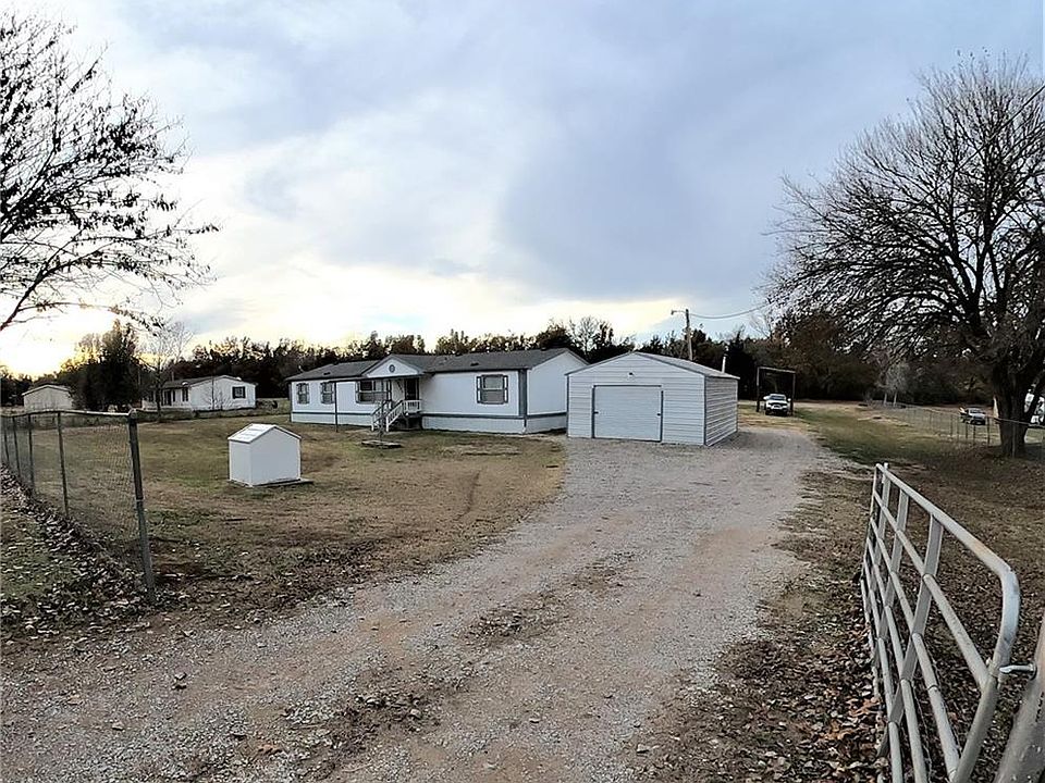 Move in Ready 3 bedroom, 2 bath home on 1.63 acres. Enjoy covered front and back patios, plus a 20x20 carport off the back patio. Features 30x20 steel shop with roll up door, 2 car capacity, work bench area, plus a loft area. 30x16x15 RV/Boat Carport with steel beams. Enjoy an open concept layout! Fresh paint inside out & plus new flooring in the kitchen. Kitchen offers lots of cabinet & counter space & features a large kitchen island. All appliances stay, including refrigerator, gas stove, plus washer/dryer. Spacious primary bedroom with a HUGE closet, ensuite bathroom that offers double vanity, soaking tub, & separate shower. Second bedrooms are spacious & are located on the opposite side of the home. Acreage backs to a creek. Less than 7 miles from I40, HWY 9, and lakes. *NOTE: Contract busted just a couple of days before closing due to buyer financing following through. No fault of the seller. Title work started at American Eagle in MWC.