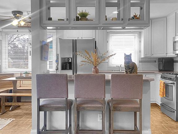 - Features: Kitchen (Eating Area-Table Space, Island), Flooring (Ceramic Tile), Window Treatments (Blinds)