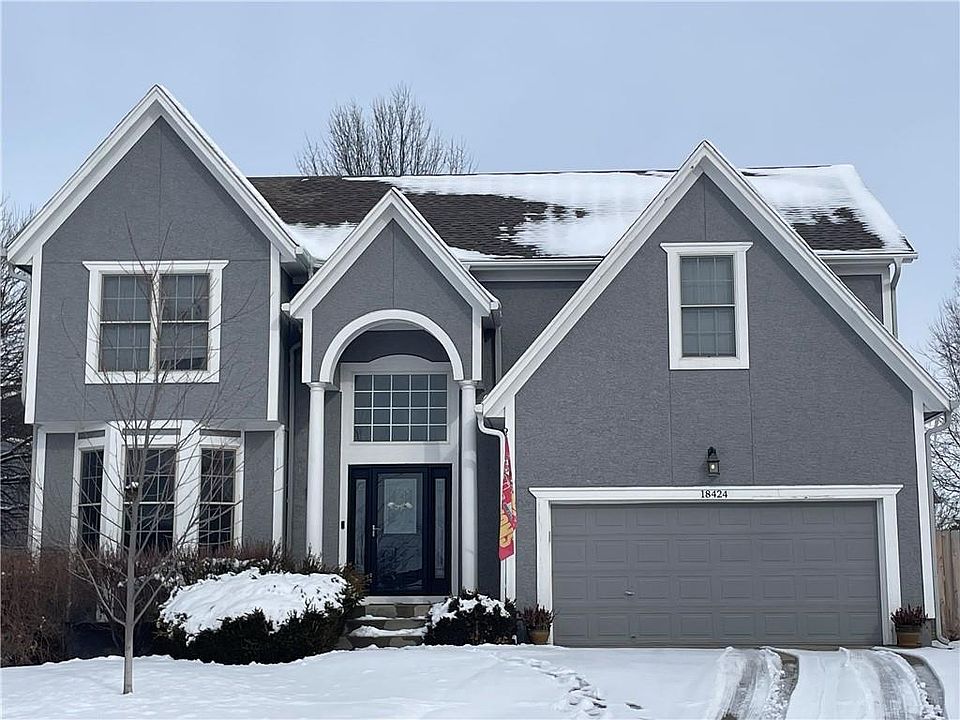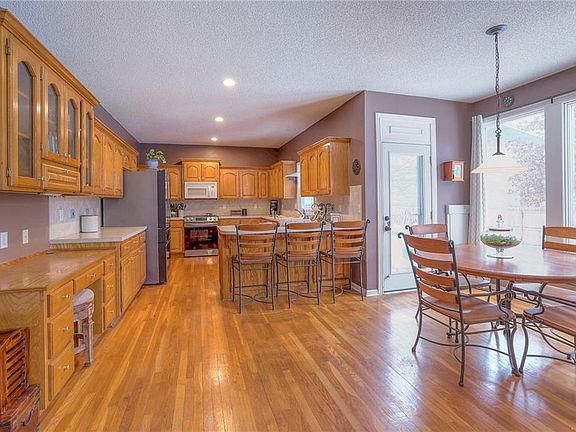 Gorgeous home in Saddlewood Downs sits on a quiet cul de sac. This amazing 2 story home features beautiful hardwood floors, formal dining room, half bath, and large family room with cozy gas fireplace on the main level. Google fiber available as well!. The kitchen features Sparkling stove and dishwasher less than 1 year old! The second level hosts four large bedrooms with nice sized closets, two updated bathroom, and a laundry room! Large primary suite features newly remodeled bathroom with jetted tub and new ceramic tile. The finished lower level is such a treat with a finished entertainment/game room. Basement is already stubbed for an additional bathroom. Don't miss the one year old water heater and two year old furnace! So many upgrades and updates in this home. AC only 7 years old! Exterior painted in 2018! Roof only 10 years old. New leaf guards on gutters in 2023! Built in sprinkler system and fenced yard make a beautiful outdoor entertainment area. Close to freeway access, shopping, and in Olathe school district (recently ranked #4 in Kansas)! Nothing left to do but move in and enjoy this well maintained, gem of a home.
