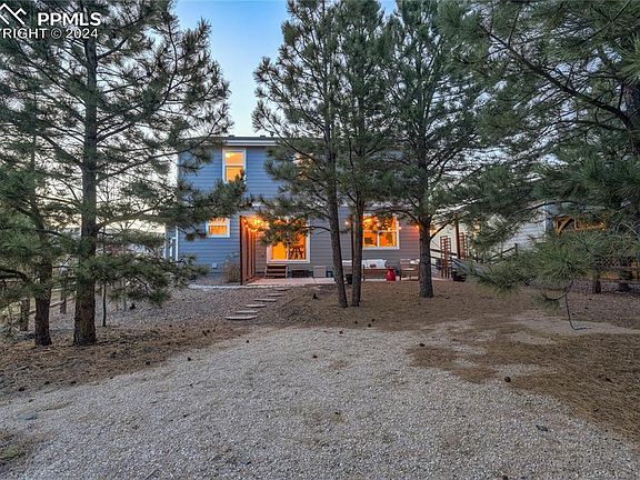 Prepare to be wowed in this stylish home in the Woodmoor community! Enter the main level featuring a living area with plenty of natural light and a stunning fireplace adjacent to the open kitchen with a large island and spacious pantry. The upper level loft, a versatile space ideal for a cozy TV room or a productive home office, offers flexibility to suit your lifestyle. The master suite is the perfect place to relax with views of Pikes Peak and a five-piece master bathroom. The basement includes a fully equipped kitchen with a fridge, microwave and dishwasher, making it perfect for hosting gatherings or accommodating guests. The full bathroom attached to the basement bedroom includes heated floors for added comfort. Movie lovers can immerse themselves in cinematic experiences with built-in surround sound in the basement. Outside, discover your own private oasis in the backyard shaded by multiple mature ponderosa pines. Conveniently located close to Lewis Palmer Middle School and Monument Lake, this home offers easy access to local amenities and recreational opportunities, ensuring a lifestyle of convenience and leisure.