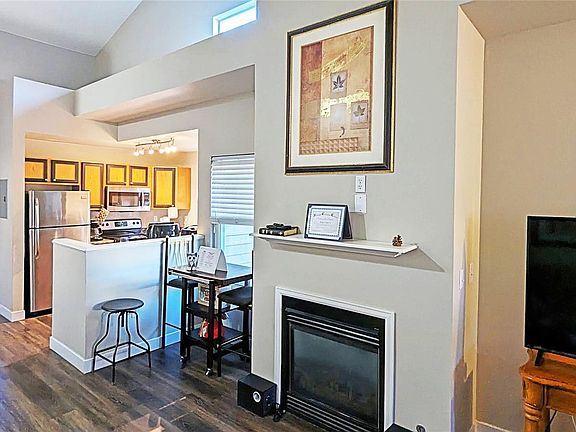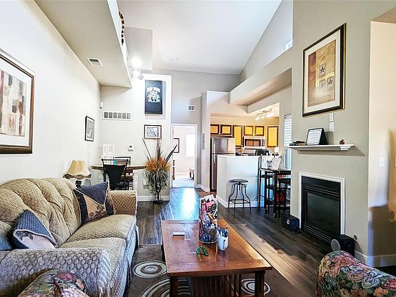 As you climb the stairs to enter this condo, you'll appreciate that there can be no noisy neighbors above. With vaulted ceilings and an open floor plan, this unit looms large the moment you enter. The gas log fireplace takes center stage in the living/dining area that is open to the kitchen. Each bedroom with accompanying bathroom is located at oposite ends of the unit affording privacy for occupants. Each room is filled with natural light thru the many windows located on three sides of the building. The laundry closet is conviently situated near the primary bedroom. There are ample storage closets throughout the unit as well as in the garage below. Walk to shopping and dining. This location is easily accessable to DIA via light rail, US225, and E470.
