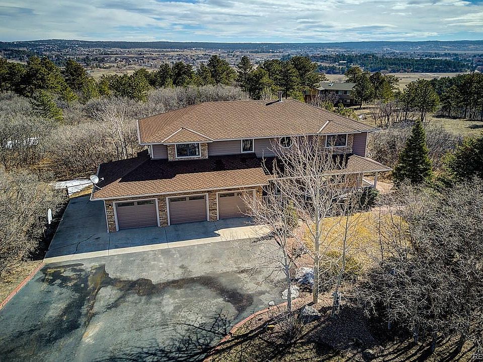 Views~Professional Landscaping~Outdoor Living Space: 29x6 Front Porch, 34x12 Stamped Concrete Patio, 12x16 Deck~Trees~Fenced Area for Children or Pets~2-Story Entry~Large Living & Dining w/ Bay Window~Updated Kitchen: Granite Counters, Pantry, Updated Appliances (Bosch Dishwasher), Sink Window~Breakfast Nook w/ Bay Window~Family Room w/ Fireplace & Walk Out~Hardwood~Spacious Master Bedroom: Views, 10x6 Walk in Closet, NEW 14x10 Adjoining Bath w/ Designer Tub, Free Standing Shower & Beautiful Double Vanity~2nd Bedroom Adjoins Bath~4 Bedrooms, 2 Baths & Laundry on Upper Level~Finished Basement~Central A/C~Humidifier~Custom Blinds~NEW Roof 2019~Asphalt Drive 2016~Shed~New Exterior Paint 2017~New Garage Doors 2017~New Interior Paint 2019~New Carpet 2019~Refinished Hardwood~New Bath Counters & Fixtures 2019~New Light Fixtures~New Hardware~New Furnace 2012~Easy Access to I-25, Colorado Springs & Denver~Convenient to Shopping, Schools, Parks, Restaurants & More! WATCH BOTH TOURS ABOVE.
