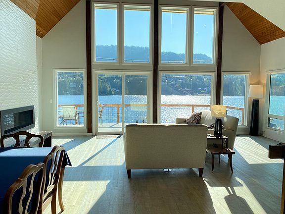 FURNISHED LAKEFRONT HOME - 2 BEDROOM, 2.5 BATH + LARGE DAYLIGHT BASEMENT Enjoy serene lakefront living and gorgeous panoramic lake views throughout this recently renovated home. Main Floor: bedroom, full bathroom, spacious living room with cozy gas fireplace, dining room, and kitchen equipped with newer appliances including induction stove, microwave, refrigerator, dishwasher, and garbage disposal Spacious master suite loft upstairs Daylight basement: second living room, wet bar, bathroom, washer/dryer Carport parking for 2 vehicles Tenant pays power, water, gas, and internet; landlord covers sewer and garbage Landscaping included No smoking; pets considered with additional deposit Available September 1st **Lease term firm through May 31, 2026 - no extensions available** Move-in requires first month's rent plus $2,295 deposit Application Process: $35 non-refundable application fee per adult Required checks include credit, background, employment verification, and rental history Please note: Portable reports and third-party applications are not accepted