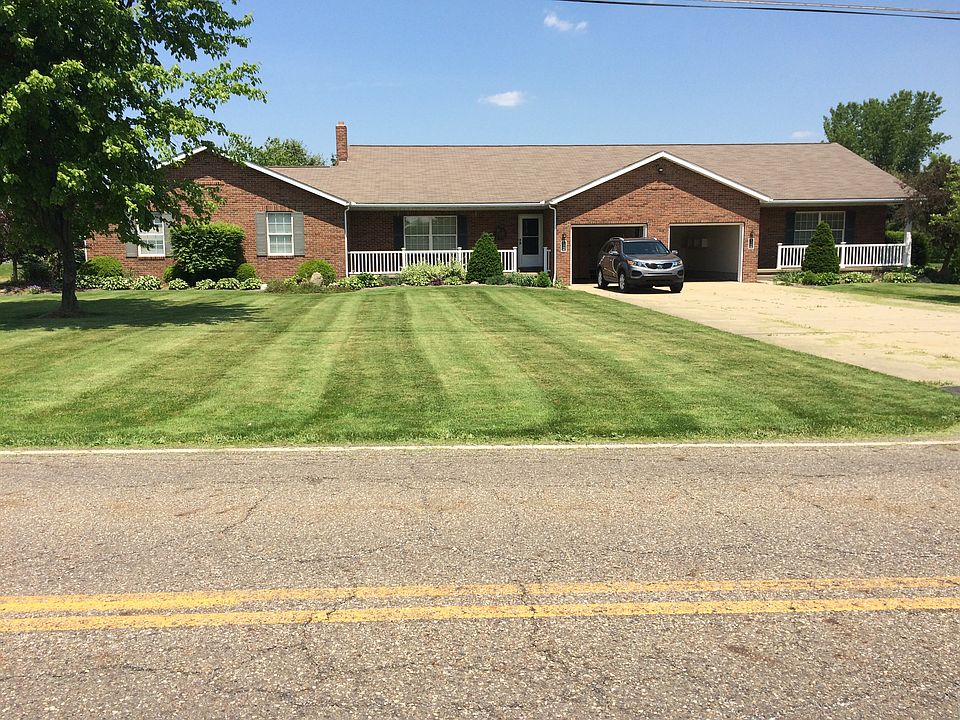 This beautiful landscaped multi family home was built and occupied by current owner. Owners side has many features: custom built cabinets in kitchen and baths, hardwood floors in kitchen, dining, entry, and hallway. Finished basement area includes full bath, two rooms, and family room. Basement has two stairway options for exit. Single car garage in front of house and additional two car garage on end with ample space for the workshop. Pole building size 26 x 42 ft. has 2-14 ft. doors to accommodate RV, boats etc. additional concrete slab at back of house with RV hook-up. The rental side has 2 Bedrooms and 1 Bath. Laundry on main floor. Full basement for lots of storage. One car garage and private deck. Optional rental income from pole barn in addition to the apartment rental. A must see!