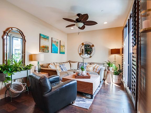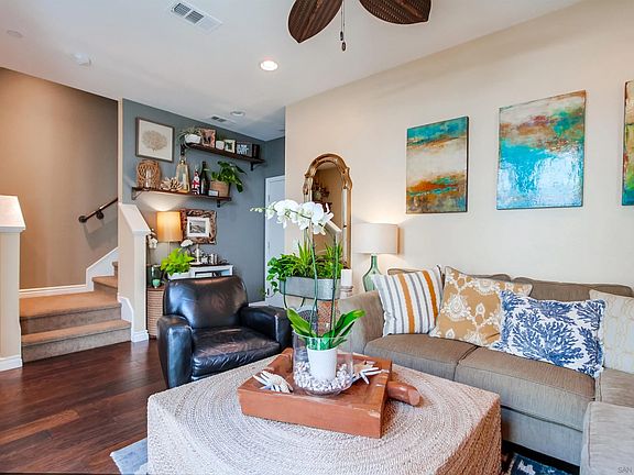 It's SHOWSTOPPER TIME!!!! This "like new" La Costa Collection townhome is right in the heart of La Costa. Walk to your favorite destinations like Cinepolis, Carlsbad Public Library, Jersey Mike's, Vons, and more! Enjoy the peaceful tranquility of your front patio while bbq'ing with friends/family. Entertain in the open concept of the kitchen/dining/living rooms. Upgrades galore: hardwood floors, shutters, lighting fixtures, sleek countertops, solar. Newly painted Interior/exterior. It’s gorgeous, turnkey and free from road noise!!!
