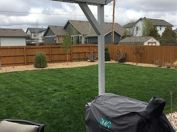 Welcome to Strasburg and your charming new home in Coyote Ridge. This home features 3 bedrooms, 1.5 baths with a covered front porch and a three car garage. Large back yard with a patio/pergola perfect for entertaining and pets. Lots of landscaping with a complete sprinkler system in front and back. Living room, kitchen and dining room all have hard wood floor. Basement is unfinished with some electrical done and is currently used as an office, workout room and laundry. It is plumbed for a third bathroom too. Bring your clients, they will love it.