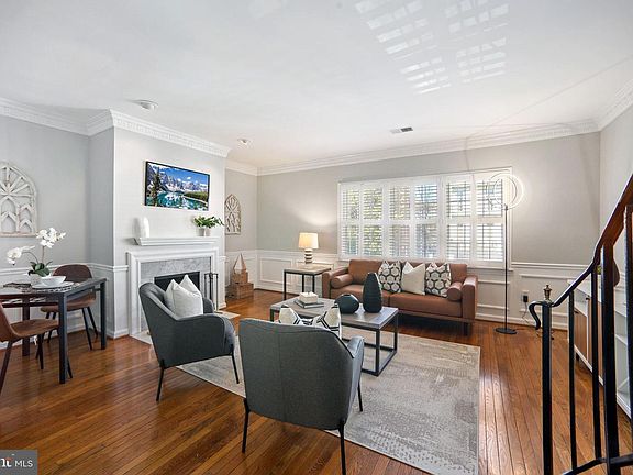 Welcome to this one of a kind gem in DuPont Circle. You'll love coming home to an elegant two level apartment with a marbled enclosed wood burning fire place. This one bedroom one bath home features original wood crown molding, wainscoting, classic hardwood floors throughout and plantation shutters. The modern kitchen has pressed aluminum ceiling panels, upscale kitchen aid stainless steel appliances (refrigerator has filtered ice), custom cabinets and granite countertops. As you walk up the, hard wood floor sky lit staircase you will find a large bedroom with 3 large windows, two spacious closets and a huge walk in closet with built in shelving. The bathroom has a full shower/tub, an enclosed FULL SIZE Bosch stackable washer dryer space and ample closet space. The end unit brownstone, offers a secured entrance and buzzer for your guest to announce themselves to your kitchen phone. The home does not have a neighbor to the side, above or behind offering privacy and peacefulness. The building landscaping is beautiful and well maintained and you have access to the community patio. As you look out your living room windows, you will enjoy the beautiful pink Crape Myrtles in the summer and the vibrant Gold Ginkgo trees that line your street in the fall. The location can't get any better with access to everything DC. Close to the metro (redline), DuPont Circle park, grocery store, dog park, great restaurants, nightlife and a Sunday Farmer's Market. Enjoy the proximity to Georgetown, 14th street, various embassies, art galleries, and the Financial District. A must see - enjoy the beauty of DC. This is a pet friendly building with low monthly condo fees.