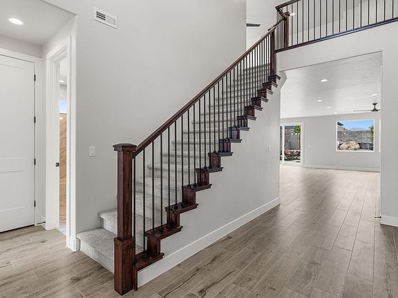 Spacious 2-level beauty offers 5 generously sized bedrooms, a dedicated home office, 4 bathrooms, and a loft, providing ample space for any lifestyle. Step inside and you'll find granite countertops, beautiful design features and elegant Knotty Alder with walnut stain cabinets throughout the home, elevating the kitchen and bathrooms with a sleek, modern touch. The open-concept living spaces are thoughtfully designed to maximize both comfort and flow, ideal for entertaining or enjoying quiet family nights in. For RV enthusiasts, this offers 13' of side yard access for easy RV parking and a spacious 48-ft deep x 14-ft wide RV garage with a 10'x12' garage door—perfect for storing your toys or trailer with ease. With no HOA, all of this is nestled in the new, scenic Firerock community