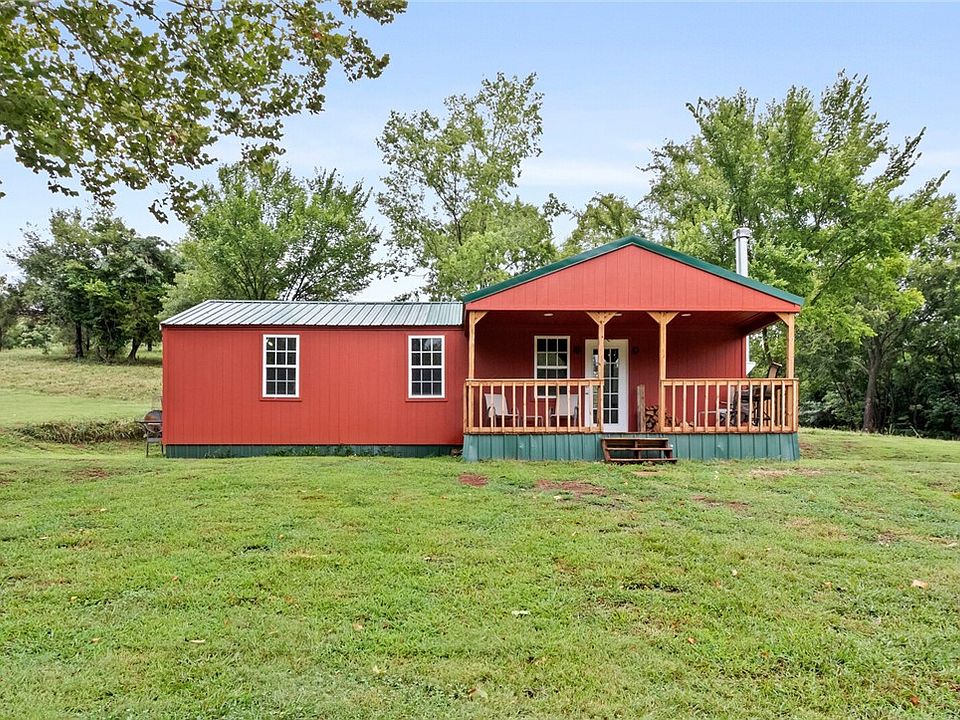 DREAMS DO COME TRUE - this is the TINY HOUSE dream and or perfect AIR BNB! Solitude in the middle of your own paradise, enjoy the view over the pond, or build a deck on the back to enjoy the backyard scenery, build your primary residence on the top of the beautiful hillside with a view across NWA/NEO! WOW! Dear and wildlife are present. This gorgeous tiny home has TWO rooms with a laundry, kitchen and living area! (Some of the personal items will be removed), but this is a turnkey and furnished option for the right home buyer! 19 ac mol with tiny home!