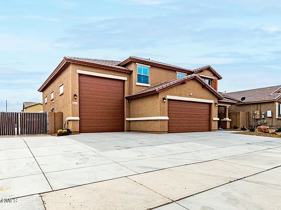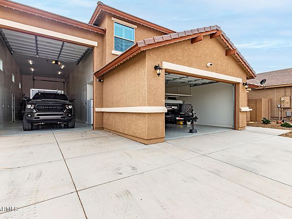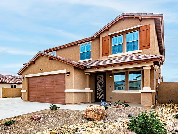 Beautifully maintained home on one of the largest lots in the neighborhood featuring an extra-long RV garage with pull-through double doors. The primary suite is conveniently located on the main floor, offering privacy and comfort. Enjoy an open-concept living area with a freshly updated kitchen featuring repainted cabinets, new backsplash, and stainless-steel appliances. Step outside to your private backyard oasis with a sparkling pebble-sheen play pool, new gazebo, low-maintenance turf, and new decorative rock and pavers. Additional upgrades include new exterior and interior paint, epoxy garage floor, poly shutters throughout, security doors, permanent commercial-grade lighting, new security system, and instant hot water. Upstairs offers three spacious bedrooms with walk-in closets, a large loft, and laundry room. Community features include a park, basketball court, and pool all just minutes from the Loop 303.