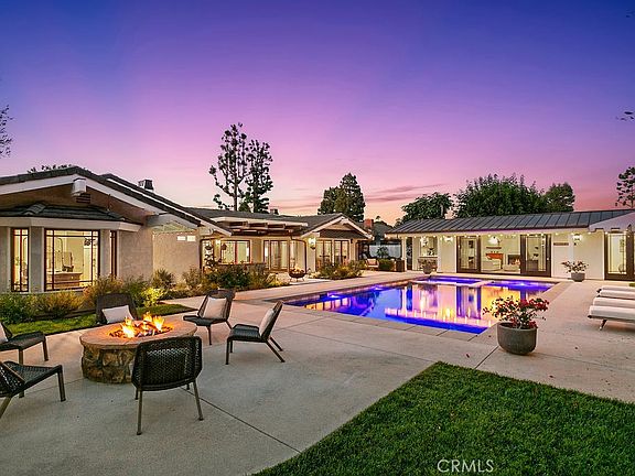When an ultra-LUX eye for design meets traditional excellence, you get a one-of-a-kind masterpiece like this stunning estate. Situated on a charming cul-de-sac, in the highly coveted Villa Park community, this TRUE single story modern gem leaves even the most discerning buyer speechless. Professionally designed and finished in a Santa Barbara coastal style, this sprawling ranch estate boasts benchmark elevations, perfect spatial balance, and an endless list of high-end finishes. Enter through side lit custom two panel cottage doors into an immaculately finished entry with soaring ceilings, solid hardwood floors, smooth finished drywall, and views of the best in show backyard. Living room is opulence redefined, with plaster finished fireplace, custom beamed mantle, spacious layout, picture frame TV, and incredible views of the lush and perfectly manicured landscape. The kitchen is finished in Starmark custom cabinetry, topped w/ porcelain counters w/ elegant porcelain splash. High end Viking SS appliances, butlers “back kitchen” pantry, and top tier faucets and fixtures make this kitchen the perfect blend of function and form. The family room is quaint and cozy with high-end designer entertainment wall. Finish and design throughout belong in a textbook for design perfection. Soaring T and G and beamed ceilings and cozy fireplace give this room that “I’m home” cozy feel while still maintaining elegance and luxury. The dining room and wet bar are balanced and perfectly complement one another. Custom cabinetry, glass inlaid uppers, wine fridge, beamed ceiling, double French doors, custom finished carpentry wall, all blend perfectly into unparalleled charm and character. The master bedroom is spacious w/ attached retreat/office. Master bath is finished in custom cabinetry, seamless glass, elegant stone countertops, custom lighting and mirrors, high end tile flooring, and more. Separately addressed high end custom ADU is on another level. Finished in 2022 w/ top of the line amenities including La Cantina pass through window, Jeld Wen windows and doors, Saltillo flooring, seamless glass, custom cabinetry, elegant fireplace, & spacious bedroom, this ADU leaves nothing to be desired. The crown of this best in show gem is the true resort style backyard. Huge resort style pool, spa, firepit, outdoor dining, doll/tree house, grassy room to run, automated pool safety cover, are just a few of the highlights. Pictures and words will never do this iconic estate justice!