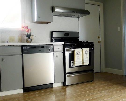 - KITCHEN FEATURES: Dishwasher, Counter - Solid Surface, Gas Range/Cooktop