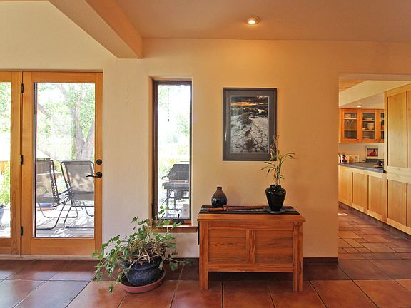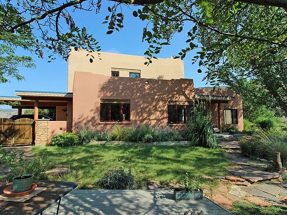 This 2 bedroom home with additional shop/guesthouse is beautifully situated on 62 +/- very private acres featuring cross fenced irrigated pasture, McElmo creek frontage and bordering thousands of acres of Canyon of the Ancients National Monument. The energy efficient custom built home has a well conceived floor plan that flows naturally from the kitchen area to a comfortable well lit living space. You'll find the master bedroom /bath upstairs with a separate multi-use room that could be used for nursery , additional seating area, etc Insulated foam block construction combined with in floor heating and gas fireplace keep the house cool in the summer, warm in the winter, and utility bills low. The exterior shop/guest house has 782 feet of 1 car garage/shop space (currently used as a shop) and an 800 square foot apartment that could also be used as an airbnb, guest house, office, art studio, etc. The sellers built and developed this property and have created a serene , well landscaped garden space around the house that features a shaded courtyard with mature cottonwood, locust, ash and fruit trees surrounded by perennial beds featuring yarrow, trumpet vine, russian sage and ornamental grasses. Fruit trees include apple, peach, pear, apricot, and cherry. 20 shares of Wilson Ditch irrigation support a healthy pasture grass mix that can harvest up to 600 bales in a typical two cut season. All irrigation equipment is included. Additional tractor shed can also provide covered parking for several extra vehicles and farm equipment. Walking down the driveway below the house brings you to the lower pastures, hay storage area and access to the creek.