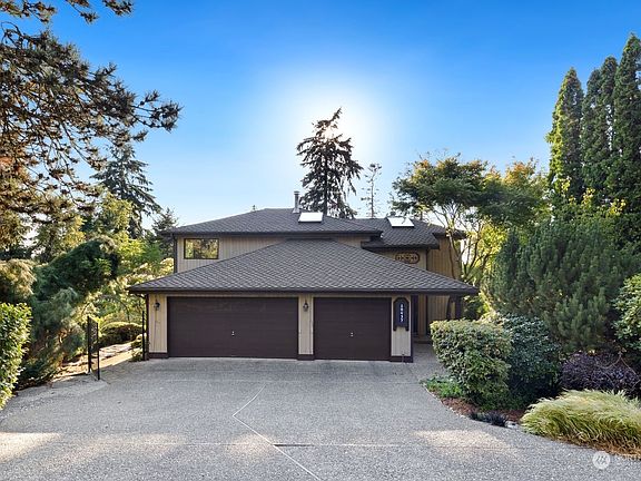 Amazing 5 BDR Home with Sweeping Sound Views on a 29K+ SF park-like setting. Perfect entertainment home! Enjoy multiple outdoor seating areas, lush mature landscaping, fire pit with view & gazebo. Wrap around private view deck with hot tub. Open concept living, soaring ceilings with multiple entertainment areas! Gorgeous View Kitchen with island & large bistro sitting bar. 4 BDR/ 2 baths up. Gorgeous view Primary suite. Stunning NEW guest suite in lower level w/ 2 entrances & sitting area. 3 car garage. 3 air powered tool hoses, a perfect workshop. Tesla charging station. Lot A Beach Rights grants you private access to 700+sf of pristine Puget Sound Waterfront, trails, tennis, clubhouse, boat launch, tons of social activities! WELCOME HOME!