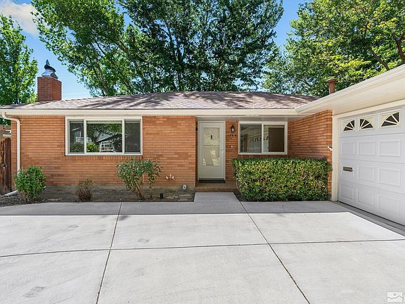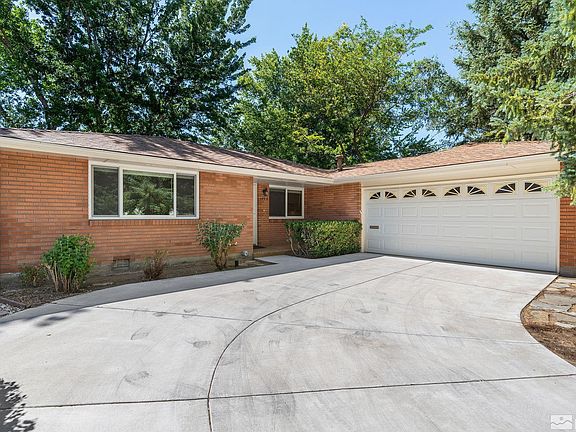 Throw up a “W” for a win and claim this charming West Carson Side home as your Anderson Heights set after eliminating the opposition for a cozy 1351 square feet of living space including 3 bedrooms and 2 bathrooms, and 529 sqft of non-living 2-car garage space, all on 6969 sf of landscaped territory. Take a core sample from the mature shade trees and perhaps 54 rings or so might be counted, dating those trees to 1970 when this home was built. Submit a better offer than the ops and claim this home now., Under the partial canopy of those trees, classic brick accentuates the façade that is further decorated with ornamental bushes, a small lawn, and creeping ivy. Step stone by stepping stone on the slate pathway to the back yard or from the concrete driveway to the covered porch. Under the canopy of the roof, that covered porch is covered in epoxied pebbles, and privacy bushes afford additional coverage. A storm door prevents exposure to temperamental weather and past the threshold, behold this house’s warm welcoming entry. Cozy up near the fireplace in the roomy living room and enjoy the smokey aroma wafting from lit logs, perhaps a local oak. Pop corn kernels and enjoy movie night underneath the “popcorn” textured ceiling. Get armed with cooking utensils from the kitchen’s plentiful drawers and cabinets and attack that recipe with a vengeance to create an intoxicating meal to die for. Use all the kitchen’s tricks of the trade and tools of the craft, including a 4-burner gas range and oven combination beneath a built-in recirculating range hood, refrigerator, double basin sink with garbage disposal, and built-in dishwasher. Clean those dirty rags in the included washer and dryer of the kitchen’s laundry closet. Open the café shutters and brew an espresso, effortlessly wiping up any drips that dropped onto the ceramic tile flooring. Serve those complex meals in the simple dining room featuring a light fixture, window, and ceramic tile flooring. Hallway doors open to the primary suite, two guest bedrooms, and bathroom, and shut to the separate coat closet and linen closet. The primary bedroom benefits from a ceiling fan as an alternative to the air conditioner during Hot August Nights and, instead of a walk-in closet, bifold closet doors open to a spacious reach-in closet. Carpet flooring muffles footsteps so not to sound like Street Vibrations when heading to the head of the primary ensuite. That master bathroom features a vanity with a single sink and a shower stall. Both guest bedrooms are considerably alike, having reach-in closets, carpet flooring, and the same light fixtures. However, they slightly differ in respect to their size, window treatment, and closet shelving. They each are situated down the hallway but with one bedroom adjacent to the shared bathroom that features a vanity with a single sink and a bathtub and shower combination. Accommodating up to two automobiles, the attached garage allows access to both the kitchen and back yard through two entry doors, one including a pet door. With plenty of shelves, cabinets, and a work bench, additional storage may be plausible in the rafters above, past the unfinished ceiling and walls. Retreat to tranquility in the back yard underneath the shade of mature trees. As if lost, meander aimlessly down the slate pathway and come across a quaint slate patio to perhaps place a petite table to enjoy that espresso. At the fork in the pathway, go left and not right to two raised garden beds. A pet can find relief on the tiny pet lawn amidst the landscape rock, bushes, and ivy. Andersen Heights Subdivision was established in 1964 and consists of 89 lots in West Carson City. Not all lots must comply with the Covenants, Conditions & Restrictions (CC&R’s) but 1844 Alpine Street (Lot 41) must. However, there is no Homeowners’ Association (HOA). That West Carson City location affords proximity to education: Fritsch Elementary (˜0.3 mi), Carson Middle (˜1.3 mi),