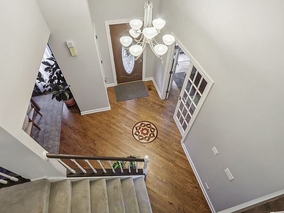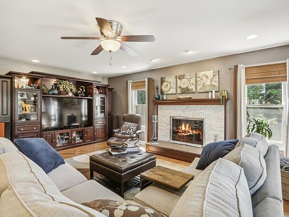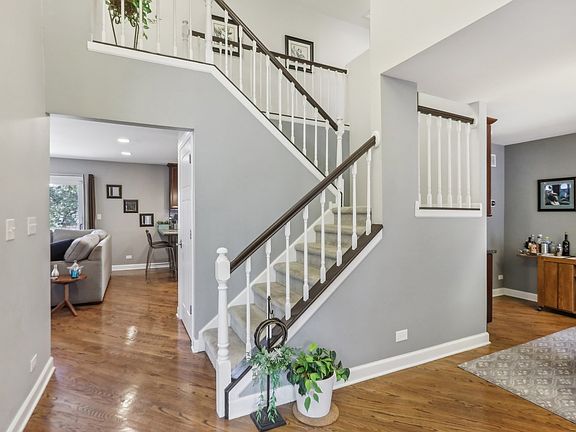 Welcome to this exceptional home in the sought-after Stockbridge Subdivision. As you step through the front door, you're immediately greeted by a grand double foyer, where a unique medallion inlay on the floor sets the tone for the elegance and craftsmanship that defines this residence. The kitchen features an island, rich cherry wood cabinets, granite countertops, a built-in mixer, and high-end appliances in stainless steel. The separate eating area has views of the luscious backyard with sliders leading out to the second patio. The first floor boasts stunning oak hardwood floors and recessed lighting throughout. The formal dining room, complete with a butler pantry, is perfect for hosting dinner parties and special occasions. The family room is a cozy retreat, featuring a gas fireplace and sliders that open to the first patio, creating a seamless indoor-outdoor flow. Completing the first floor is an office with French doors and a bay window that offers a quiet space for work or study and can easily be converted into a fifth bedroom if needed. Upstairs, the primary bedroom is a serene oasis, complete with dual closets and an ensuite bathroom that includes a whirlpool tub, separate shower, and double sinks. Two of the four bedrooms feature beautiful wood floors, adding to the home's warm and inviting atmosphere. The home also includes an upgraded pantry leading to the garage, which has been finished with epoxy flooring. Roof, siding, gutters, and guards were all replaced in 2019, offering peace of mind for years to come. Step outside into the meticulously landscaped backyard, where you'll find a tranquil oasis complete with a built-in KOI pond and fountain, an abundance of flowers, an herb garden, and mature trees. The yard is fully fenced for privacy and features two unique patios. Located in a quiet, well-established neighborhood, this home is close to top-rated schools, parks, shopping, and dining. With easy access to major highways, commuting to nearby cities is a breeze. Experience the perfect blend of elegance, comfort, and outdoor beauty in this stunning Elk Grove Village home.