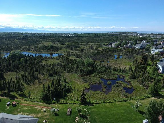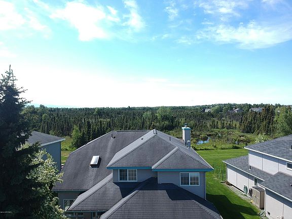 Rare and private beautiful southside home with views of mountains, backing Milford Pond and Federal Reserve Park. Watch Alaska wildlife from your back yard trex deck; yard is beautifully landscaped. Traditional floorpan home with all bedrooms up. Real brazilian cherry hardwood floor, stainless steel appliances, and quartz countertops in kitchen. This home has been loved and it shows.
