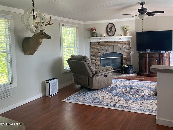 This 2004 Clayton Homes singlewide was relocated to a private two-acre lot in 2022 and has undergone big ticket item improvements, including the installation of a new metal roof, gutters, septic tank, well pump, and a Goodman gas pack HVAC system. The residence features a tiled shower and durable Luxury Vinyl Plank (LVP) flooring. It is situated in the country, making it an ideal location for nature lovers. The property is also perfect for creative Airbnb hosts and is competitively priced for first-time homebuyers.