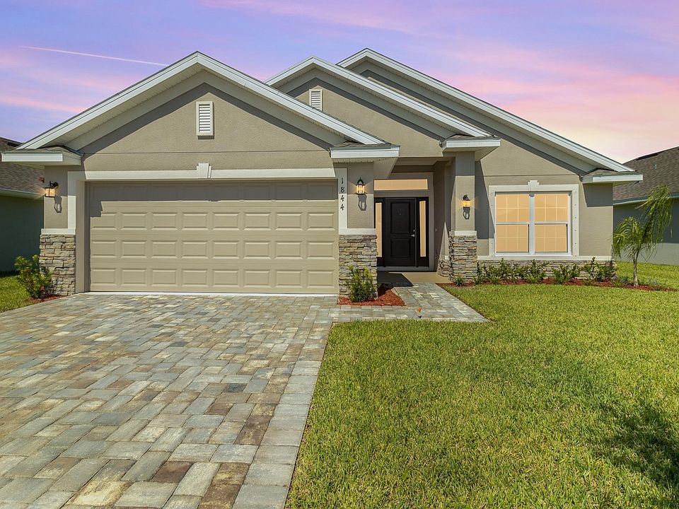 Welcome to this lovely, spacious and open floor plan at the Courtyards At Waterstone community in south Palm Bay, Next to Sunrise Elementary School and minutes from Bayside High School! Publix is a walking distance among other convenience stores as well to name a few.