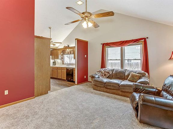 Don't miss this opportunity! Move-in ready with many updates. Walk-in and say WOW! to the tall open ceilings in the living room and kitchen, a rare find in this price range. Newer carpet, newer paint, newer bathroom vanity top, newer toilet, newer luxury vinyl plank flooring in the kitchen and bathroom, above and below cabinet lighting in the kitchen, low maintenance vinyl siding, vinyl replacement windows, new water heater 2015, new dishwasher 2017, new water line 2017, refinished cabinets, and new range 2018. Big fenced back yard with playhouse. Small finished room in the basement. Detached garage with newer garage door.