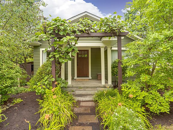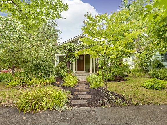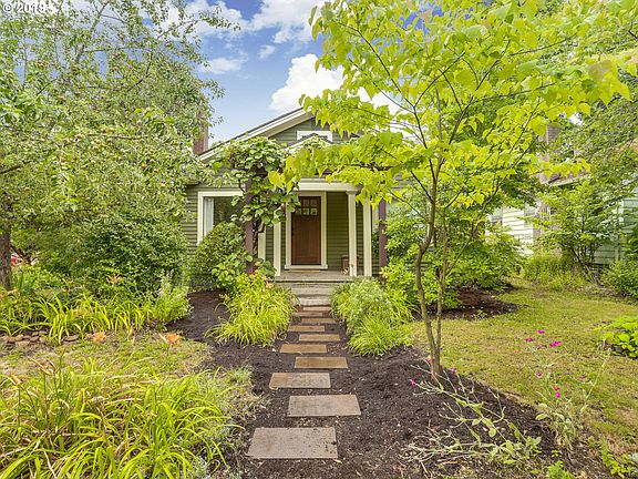 Tucked inside a lush landscape lays this craftsman gem. Kiwi, apple, grape, fig, & herbs abound. Lovingly restored home - custom wood doors/kitchen cabinets, beautifully refinished floors, energy efficient upgrades, new roof. Kitchen w/ cork floor, concrete counter, amazing tiled wall, SS appliances. TV room and storage in basement. Wood shop in back w/ so much potential. Parks, farmers market & carts blocks away from this quiet oasis. [Home Energy Score = 5. HES Report at https://rpt.greenbuildingregistry.com/hes/OR10073444]