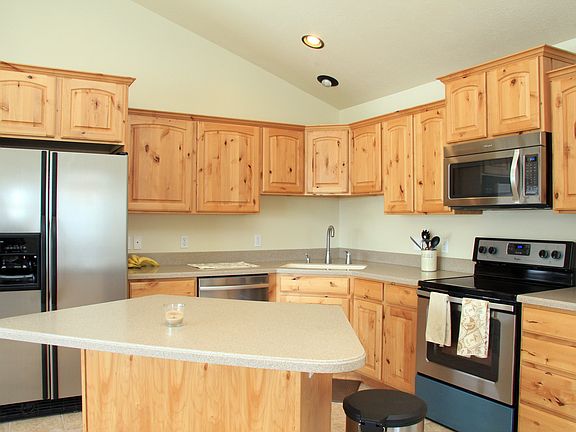 This Syracuse Rambler is very clean and can easily be mistaken for a new home as you walk through the door. Fully finished with 5 bedrooms and 3 bathrooms. A few features include new paint and carpet, solid surface countertops, separate tub/shower in master bath, Fireplace in the family room, main level laundry & more. Enjoy feeding baby goats through the fence or relax on the deck and watch ducks and geese swim within viewing distance. With no backyard neighbors the setting and view is peaceful and quiet. Plenty of room for a growing family or for entertaining. If you need RV parking there is more than enough room on the side of the home to accommodate. With so many features this home won't last! Call today for a private tour, You'll be glad you did!