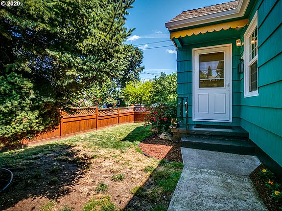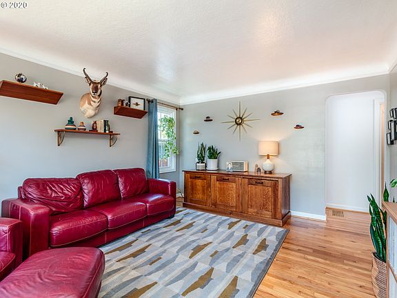 Step into this hip 1947 sellwood ranch with original cedar shake siding & hardwood floors throughout. Pull through garage is heated/cooled space with updated electrical. Updates include: 50-year roof 15', sewer 15', 200amp panel&meter 18', Central AC 19', outside/inside paint & refinished bath tub in 20'. Kitchen cosmetics have been updated while keeping original charm. Large, private back yard is lined by mature trees with plenty of room for gardening & entertaining under the covered patio.
