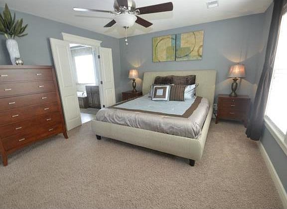 HGTV show home! gorgeous! Open Concept 2 story floor plan. Large, walk in Pantry, spacious bright kitchen opens to covered patio with fireplace. Kitchen has island breakfast bar. Gleaming hardwoods. private covered patio off master bath. spa-like retreat. Home is surrounded by beautiful landscape and greenspace. Pool is close by, but not too close for comfort. Double infinity pool will draw you in during the summer months. Huge and Immaculate 3 car garage. Raised bed garden space ready to go. A real dream home.