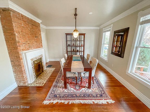 This American Foursquare has large bedrooms, a beautiful kitchen and formal dining room that looks out onto a covered front porch. The kitchen has cherry cabinets, granite countertops and stainless steel appliances. The Primary Bedroom has an en suite with shower. Hardwood floors, exposed brick and four fireplaces add to this homes charm. A large deck overlooking the fenced in yard is great for entertaining.