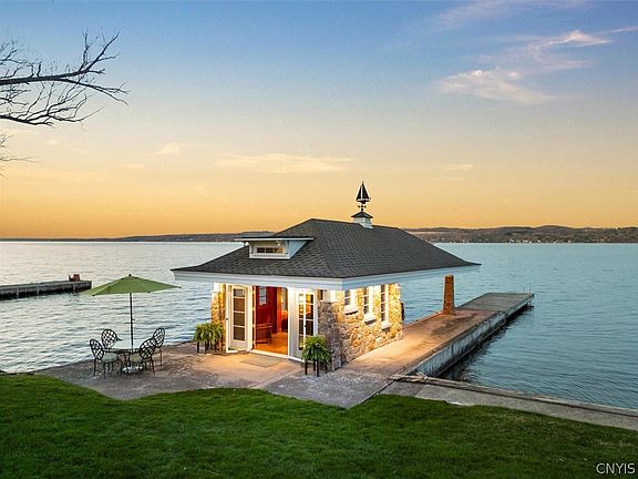 Welcome to your waterfront oasis at 1844 W Lake Road in picturesque Skaneateles, New York. This stunning property boasts breathtaking views of the pristine lake, offering a serene and luxurious retreat. With modern amenities, spacious living areas, and custom woodwork throughout, this 5 bed, 4 bath home is perfect for those seeking both comfort and elegance. The property features a charming boathouse for those who love water activities and a chef's dream kitchen for culinary enthusiasts. Custom craftsman Matteo Bartolotta captured the epitome of timeless charm in the spacious kitchen. The deep tones of the Tiger Maple cabinets complement the natural coloration of the granite island, creating a soothing space to enjoy your evenings. Enjoy the tranquility of lakeside living by entertaining on the expansive patio and relaxing in the large heated spa that overlooks the private fully fenced yard. This home demonstrates the perfect blend of modern luxury and natural beauty. Own a piece of paradise in one of New York's most stunning settings.