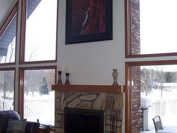 Beautiful riverfront chalet home on 2.2 acres on Indian Village Road north of Big Rapids. Home features cathedral ceilings, 2 fireplaces, fabulous gourmet kitchen w/stainless appliances, granite counters & hardwood floors. Master suite w/double sinks & walk-in shower in bath, landing set up as office overlooking living room. Lower walkout level features family room, full bath and bonus room. With 300 feet of frontage on Muskegon River, 40 x 80 pole barn and maintenance free decking, this home ha s so much to offer for the buyer that wants privacy, country setting, river frontage, upgrades in kitchen & baths. (Occupancy 15 DAC; occupancy of pole barn 30 DAC but no sooner than 5/30. Seller reserves right to take Burning Bush on east side of house)