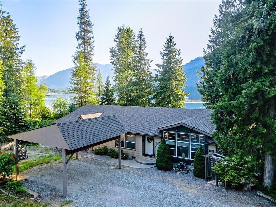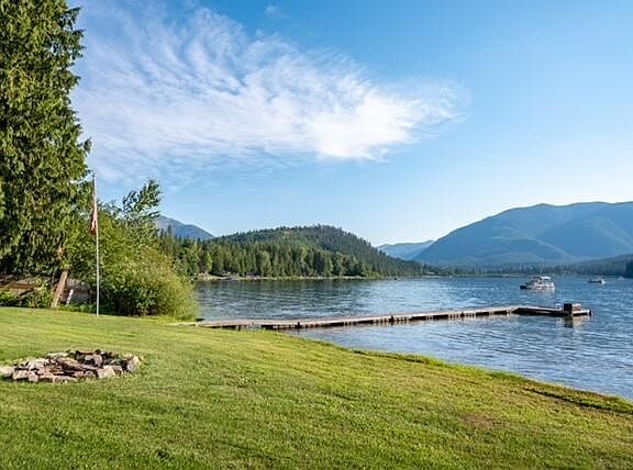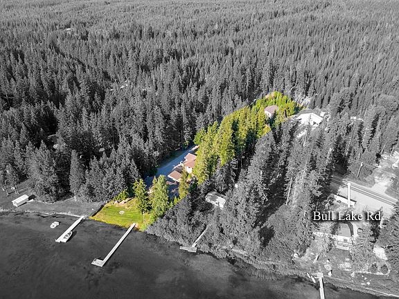 This custom designed Bull Lake home was built to gather and entertain. It has a large kitchen with lake views, knotty alder cabinets, granite countertops, hardwood floors and a large pantry that has room for a refrigerator. There are 2 living areas, 4 bedrooms, 2 bathrooms--one with atiled shower and the other with a jacuzzi tub. The laundry room has a sink and access to outside and one of the bathrooms. There are sliding doors that lead out to 2 decks that have mountain and lake views. There are also 2 eating areas with one being a formal dining room. Outbuildings include a 40x60 shed across the road (HWY 56); a 2 car garage with a lean-to for wood or equipment, a gun room with gun safe; and rustic guest quarters with cable TV, electricity, heat and air conditioning. There is a powered Sunsetter awning on the deck, 2-car carport, a greenhouse, and outhouse and parking for an RV with water and sewage. The house is built with 2x6 construction and drywall with craftsman touches. It also has a propane stove, AC, a 20kw generator wired to a transfer switch and a dock. It is on a permanent foundation and has been de-titled. Boating, water skiing, fishing, hunting snowmobiling-you can have it all with this Montana dream property.