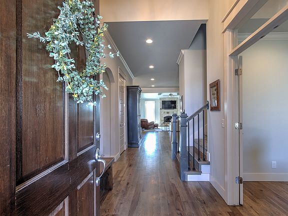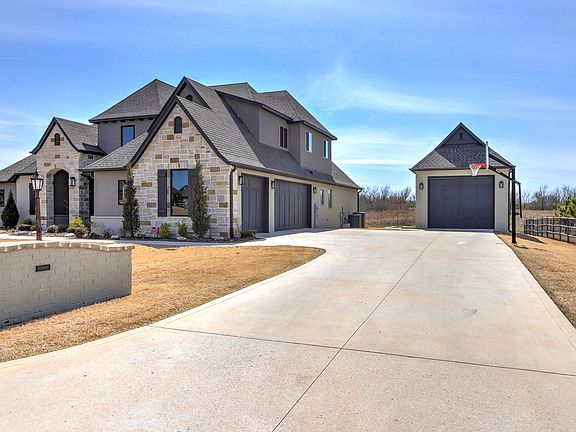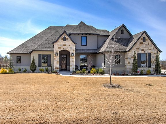 Former Epic Homes Parade model. Open floor plan with great entertaining flow. Windows to impress! 5 beds! 3 beds and 2.5 bathrooms downstairs, game-room, 2 bedrooms, a bath & theatre room up. Master suite & lux spa bath that connects to the laundry room. 1/2 acre greenbelt lot. Shiplap wall in formal dining room. Modern with Rustic Hardware touches. Safe room. Barn door off of utility. Matching detached garage easily houses a boat and toys!