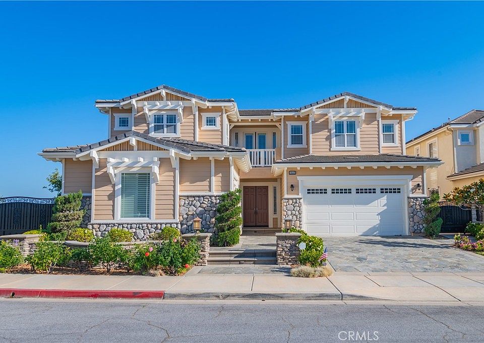VIEWS, VIEWS, VIEWS! Located in the heart of the Vista Del Verde golf community in the city Yorba Linda with a rare 180-degree unobstructed panoramic view. Built by the Toll Brothers, this unique property is situated on the highest viewpoint on a cul-de-sac within the tract at almost 11,000 sqft. An unparalleled corner parcel, this gorgeous home opens to a grand two-story foyer. A crystal chandelier and a spiral staircase with elaborate ironwork and new designer carpet adorn the entrance. Marble tiles extend out to hardwood flooring, leading to a formal dining room. The 5237sqft of interior space features 2 separate living areas, 5-bedroom en-suites—with one located downstairs, a separate study room with built-in desk and shelves, a gym, and a second study adjoining the master bedroom. Crown molding, recessed lighting, and plantation shutters in all rooms. New paint for the entire interior/ exterior and a dual-zone HVAC system. A large enclosed sunroom in the back faces the beautiful view, with opportunities for various uses from a home gym, an office with a separate entrance, or a home theater. All bedrooms are generously sized with its own bathroom, most with walk-in closets with built-in shelves. Both living areas contain a fireplace, with the main one having a large built-in entertainment center and wired for surround sound with speakers. The Master Bedroom has a private balcony, two walk-in closets, and a master bath with marble tiling on floor, bathtub and shower enclosures and granite countertops. This house offers a three-car attached garage with beautiful stone paved driveways as well as an electrical RV gate which leads to a large private side yard with the million dollar view. The yard is professionally maintained and hardscape and the side lot is big enough for a pool or a basketball court as well. Conveniently located near 55, 90 and 91 freeway; walking distance to the Black Gold Golf Club-- a par 72 layout ; the renovated Yorba Linda Town center; the Yorba Linda Public Library and the distinguished PYLUSD, the Placentia-Yorba Linda Unified School District. Community offers several hiking and horse trails nearby. Come visit today!