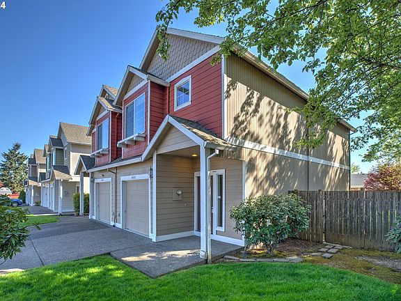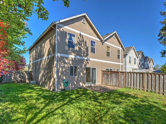 Not your typical townhouse!! This West Beaverton end unit offers a spacious fenced yard nicely shaded with trees on the south side. It has high ceilings on the main; vaulted ceilings in the bedrooms for lots of natural light. Great room layout on the main level. The living room features a corner gas fireplace. The kitchen has oak cabinets, laminate counters, an island, & a pantry. The dining space looks out into the spacious back yard. The laundry is upstairs in hall. Kitchen appliances stay. There is an attached one-car garage, driveway parking, as well as an additional assigned parking spot. Convenient location to freeways, schools, downtown Beaverton, Nike, Columbia, Intel, and the rural spaces like Jenkins Estate and Cooper Mountain Nature Park.