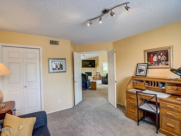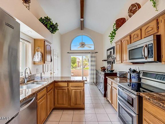 Well maintained 3-bed, 2-bath, home located on a large quiet Cul-De-Sac lot with mature landscapping, snake proof fence for Fido, wrap around covered patio, creating a special outdoor living environment. Great room with vaulted ceiling, wood burning fireplace, 3 sliders leads to the wraparound covered patio. Updated kitchen, with vaulted & beamed ceiling, granite counters, SS appliances which includes a french door refrigerator. At the end of the isle kitchen is the breakfast room with slider to a front patio for morning coffee. Master bath with shower, soaking tub, double sinks, & walkin closet. Tile roof underlayment was replaced in 2010, flat roof was rcoated a few years ago, all windows & sliders were replaced, newer irrigation system, H2O entire house water filtration system, inline recirculation pump in the hot water line for instant hot water, raised toilets, security system, 2 car garage with attached cabinets.