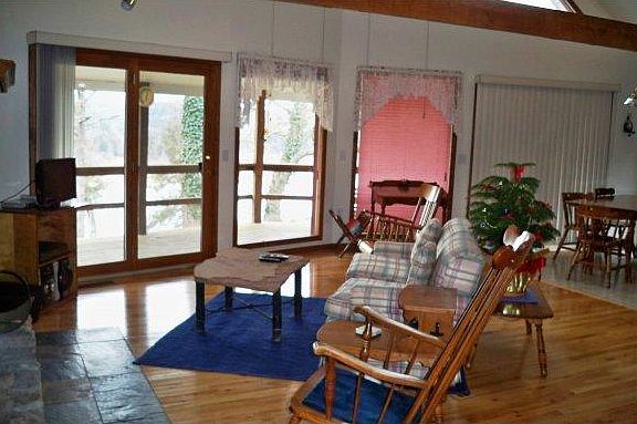 Great lakefront chalet with panoramic view. Large covered deck on two sides of the home. Cathedral ceiling in great room has a wall of windows & doors, hardwood floors in great room, ceramic in kitchen & baths. Double carport & circle drive provides lots of parking. Don't miss this one....it is move in ready!