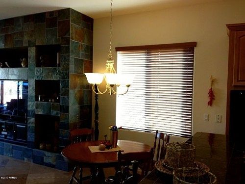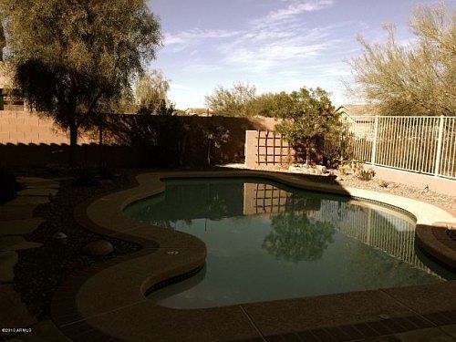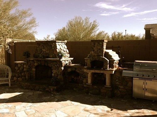 4Bdrm / 3 Car Garage w/ Pool situated on View Lot in Estrella Mountain Ranch! Kitchen has Granite Countertops, Double Ovens, Island opens to Family Room for easy entertaining! Travertine Backsplash & Flooring, Gas Range (also wired for Electric) Alarm, Surround Sound Prewired, Water Softener, Laundry Room Cabinets & Sink. 3 Car Garage. Large Sliding Glass Door at Family Room leads out to Beautiful Pool w/ In-Floor Cleaning System, Flagstone Patio & View Lot that backs to Natural Desert Wash. Built-In S/S Gas Grill, Custom Stone Smoker, Pizza Oven & Fireplace. Outdoor Speakers at Covered Patio and easy care landscaping! Call today to View! Wont last long with all these upgrades!