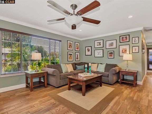 Move in ready! Beautifully updated open concept one-story with quartz counters, glass tile back splash, stainless steel appliances, updated bathrooms, crown molding, decorative tile floors & woodburning fireplace. Tropical backyard with fruit trees, raised garden beds, tiled patio and custom trellis