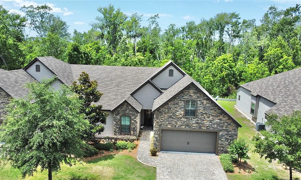 Discover the hidden gem you've been searching for! Located in one of the most sought-after areas, this stunning 2-bedroom, 2-bathroom home is just a short walk away from shopping and boasts beautiful wooded views with no rear neighbors. The original owner has meticulously maintained the property, ensuring it is in top condition. The modern open layout features granite countertops and stainless steel appliances, ceramic tile floors , plantation shutters creating a beautiful space that is perfect for entertaining. The low HOA fee covers lawn maintenance and irrigation, so you can relax and enjoy your surroundings. Need extra space? The bonus room above the 2-car garage is easily accessible via the chair lift that the sellers have installed. Spend your afternoons on the screened lanai at the back of the house, where an awning has been installed to keep you cool and comfortable. Sliding glass doors pocket into the wall to give added room for entertaining. Seller has installed gutters for added convenience. Plus, the Tavares is known as the seaplane capital of the world and allows golf carts on the roads, giving you easy access to everything the area has to offer. Enjoy art festivals in downtown Mount Dora, just minutes away. You must come and see all this home has to offer!