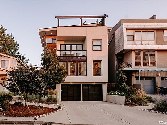 1845 Boulder is a custom-built home located in an exceptional pocket of Denver's coveted LoHi neighborhood. This is a private residence which offers substantial interior space coupled with multiple outdoor areas, highlighted by an expansive 3rd-floor deck offering stunning views and serving as an immaculate setting for both entertaining and enjoyment. This 5 bedroom/5 bathroom home features 3 main-level bedrooms, including a primary suite with oversized windows and private balcony, along with 2-lower level bedrooms perfect for guests. The home sits high on the lot and is flanked with custom landscaping, gardens and a secure turf yard, perfect for a pet. Natural light amplifies the open living space featuring a beautiful kitchen with oversized island which opens to the living room and gas fireplace. Behold the upper level of this home where sliding glass doors connect another family room and bar to an expansive ~500 sqft rooftop deck. Enjoy dining al fresco in this private retreat made incredibly special by the views, gas fireplace, and convenience of an upper level kitchen. There is plumbing available for a hot tub. This home has a number of unique and notable features including owned solar and geothermal mechanical systems which offers immense energy efficiencies and cost savings. Additionally, reap the benefits of 2 private garage spaces, and an additional 4 off-street spaces on the private driveway; an often over-looked luxury. This home looks like and lives like a single-family but is deemed a townhome as there is a shared wall off the back (kitchen wall) with a non-visible property that is accessed via 32nd Ave. The design and ingenuity is unparalleled. Exceptional care and pride of ownership is evident in this LoHi home which strikes the perfect balance of private and city-living.