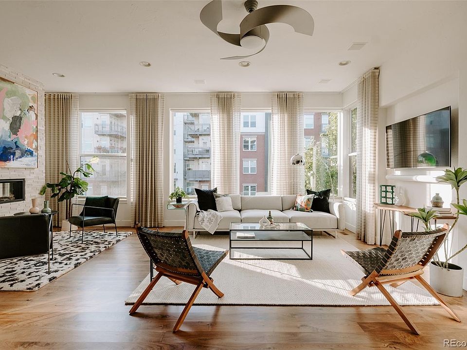 - Description: Oversized Windows Steeped With Natural Light, Contemporary Walnut Floors, Gas Fireplace And Open To The Kitchen