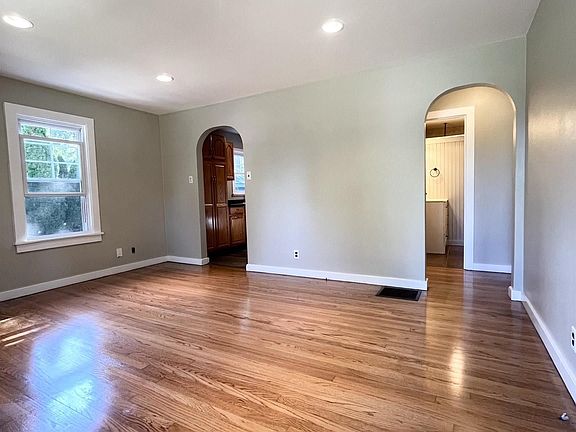 Fenced yardExposed brickMaster suiteStylish waterfall showerElegant archwaysFormal dining roomHardwood floors