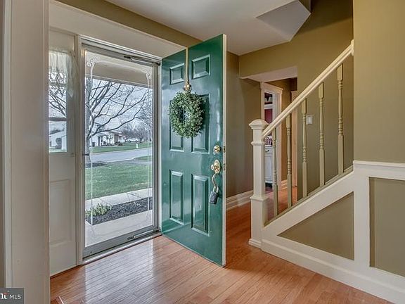 Orchard Valley 2 Story Colonial with covered front porch features formal entry with hardwood floors. Formal living room opens to formal dining room with new wall to wall carpeting and custom millwork. Eat in kitchen, flooring replaced just last year, with newer dishwasher and cerran top range. Separate eating area with twin windows opens to family room with wood burning fireplace with stack stone veneer surround, slider to pressure treated deck and view of large fenced backyard stack veneer. First floor laundry and access to 2 car garage. 2nd floor Master with newly remodeled master bath double shower & pedestal sink. Remodeled hall bath, Newer vinyl replacement windows(2015) T/O, newer dimensional roof (2015), HVAC (2015). Water Heater less than 5 years old. Full unfinished basement. Freshly painted T/O. A must see! Showings start 5/14. Easy Show and Go
