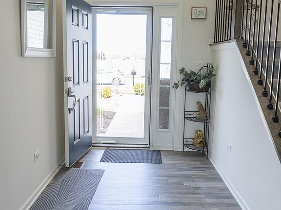 This is a must see two story duplex, you enter into the spacious foyer with a very high ceiling with a window to bring in the sun light. This beautiful home features 3 bedrooms , 9 ' ceilings on the main floor, maple kitchen cabinets and stainless steel GE Appliances in the kitchen : Portable Dishwasher, Gas Range, Microwave. The Insignia Washer and Whirlpool Dyer are NEGOTIABLE. LED surface mount lighting, modern two panel doors with white trim. WI-FI will benefit your needs throughout the house to keep you connected and with smart home automation. Ring door bell pro, Ring alarm Security ,my Q smart Garage control and Honey well thermostat. This two story Townhome is located in this newly built community of Heather Ridge Subdivision , that is conveniently off of I-65, Crown point school district and very easy access to your local shopping center and nice restaurants. You can also enjoy the walk to the play ground for your family . Lawn care and snow removal is included with the monthly HOA fee. Finished laundry room is on the upper level for very easy access for your convenience, Master bath in the Master Suite, one bath off of the hallway adjacent from the other two bedrooms. Carpeting and vinyl flooring is throughout this 1,768 SF living area of this beautiful home. Please don't miss out on your next newly home to enjoy living in . The sellers are on CONTINGENT of selling their house and purchasing another house of their choice to CLOSE. Just make an appointment to see this beautiful home.