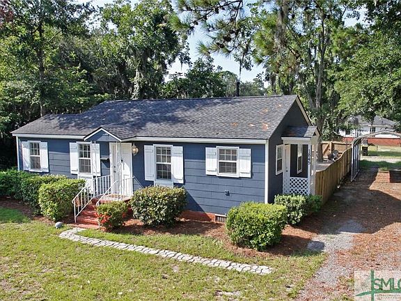This charming 1950âs cottage style Home sits on a large lot near Savannah's most popular attractions! Featuring instant curb appeal you'll fall in love with the classic white shutters and eye catching blue exterior. As you enter the Home you will be greeted with the original hardwood floors and an abundance of natural light. The kitchen is fully equipped with a gas stove, tons of storage, and plenty of prep space. From the spacious living room you will find the first bedroom perfect for an office space or craft room. The second bedroom is large and adjacent to the hall bathroom with the original tile and pleasant fixtures. The Master Bedroom features two closets and a large en suite bathroom. The Home sits on a quarter acre lot featuring a fully fenced yard, fire pit, large storage shed, wood deck, and turf workout station. This show stopping yard is perfect for fitness, pets, and entertaining! Don't miss your chance to call this adorable house your Home sweet Home!