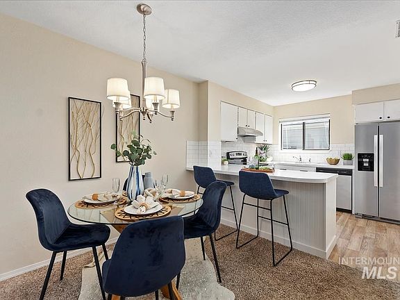 Townhome Located in Desirable Location Close to Bown Crossing, Boise River, Greenbelt & All Things SE Boise Has to Offer! This 2 bedroom, 1.5 bath End Unit Features an Open Living Space, Dining Area & Updated Kitchen w/Breakfast Bar, Window Sink, Stainless Steel Appliances & Pantry. Convenient ½ Bath for Guests. Two Good Sized Bedrooms Upstairs, Primary W/Ensuite Full Bath & 2nd Bedroom w/Nice Front Balcony. Fridge, Washer & Dryer All Included, AC & Furnace New in 2022, Hot Water Heater New in 2017. Private Back Patio, Deep Single Car Garage along w/2nd Designated Parking Spot. HOA is Responsible for Roof, Exterior Maintenance, Snow Removal & Common Area. Come Enjoy the Low Maintenance Lifestyle & the Community Pool Right Out Your Back Door! BTVA. WELCOME HOME!